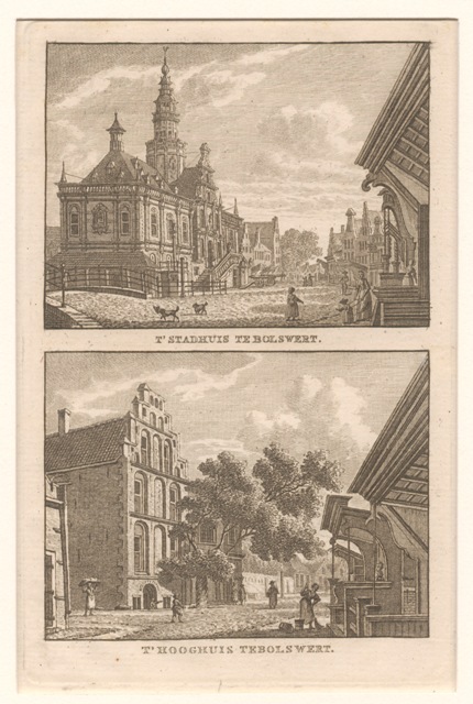 Gezicht op het stadhuis, gezicht op het Hooghuis te Bolsward