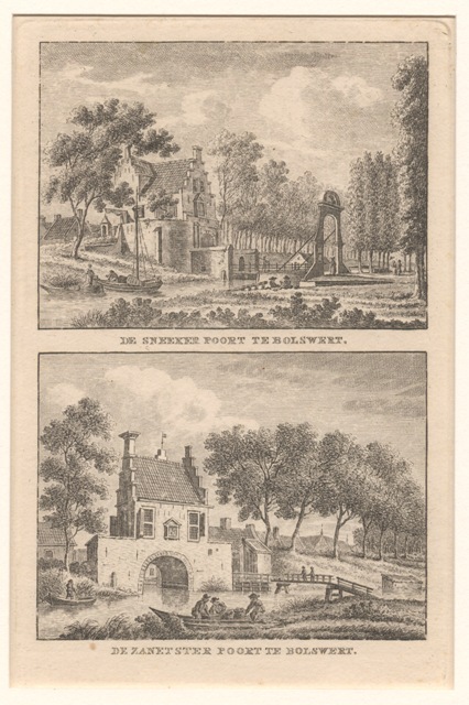 Gezicht op de Sneekerpoort en op de Zanetsterpoort te Bolsward