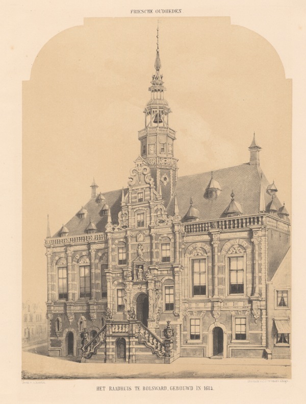 Gezicht op het stadhuis te Bolsward
