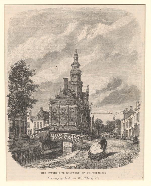 Gezicht op het stadhuis te Bolsward
