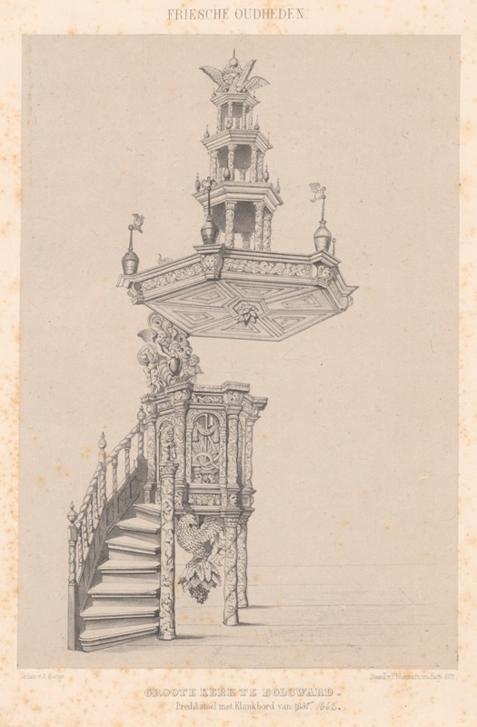 Gezicht op de preekstoel in de Grote Kerk te Bolsward