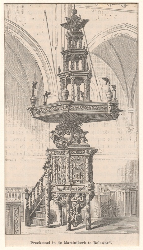 Gezicht op de preekstoel in de Martinikerk te Bolsward