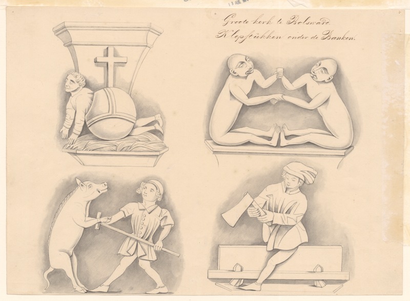 Gezicht op de klepstukken onder de banken te Bolsward
