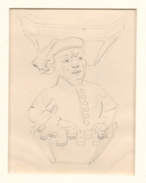 Gezicht op snijwerk aan de koorheerbanken in de Grote Kerk