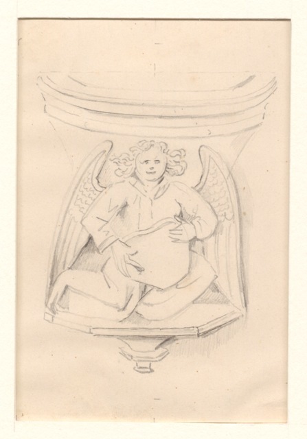 Gezicht op snijwerk aan de koorheerbanken in de Grote Kerk