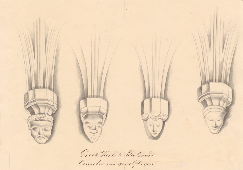 Gezicht op de consoles van gewelfbogen te Bolsward