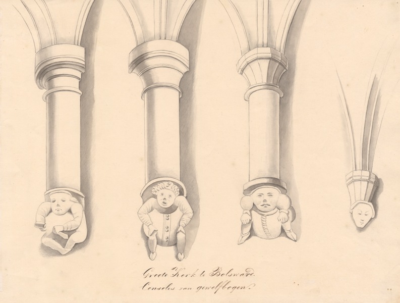 Gezicht op de consoles van gewelfbogen te Bolsward