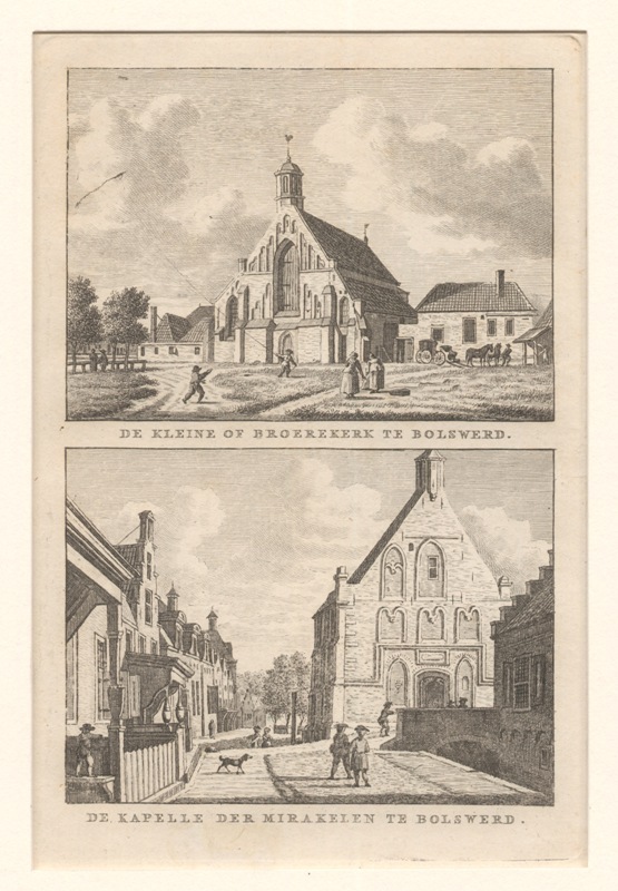 Gezicht op de Kleine kerk en de Kapelle der Mirakelen te Bolsward