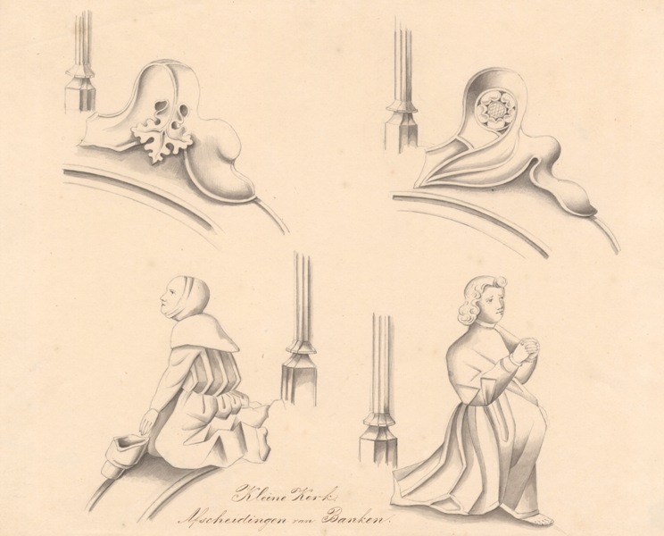 Gezicht op afscheidingen van banken in de Kleine of Broerekerk te Bolsward