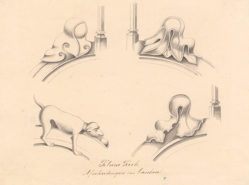Gezicht op afscheidingen van banken in de Kleine of Broerekerk te Bolsward