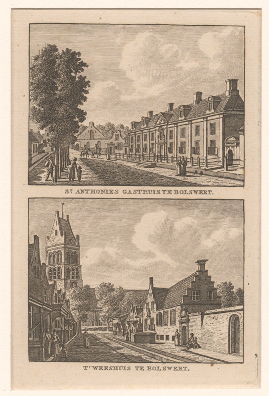 Gezicht op het St. Anthony gasthuis en het Weeshuis te Bolsward