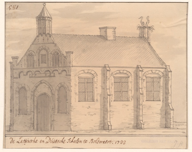 Gezicht op de Latijnsche en Duitsche Scholen te Bolsward