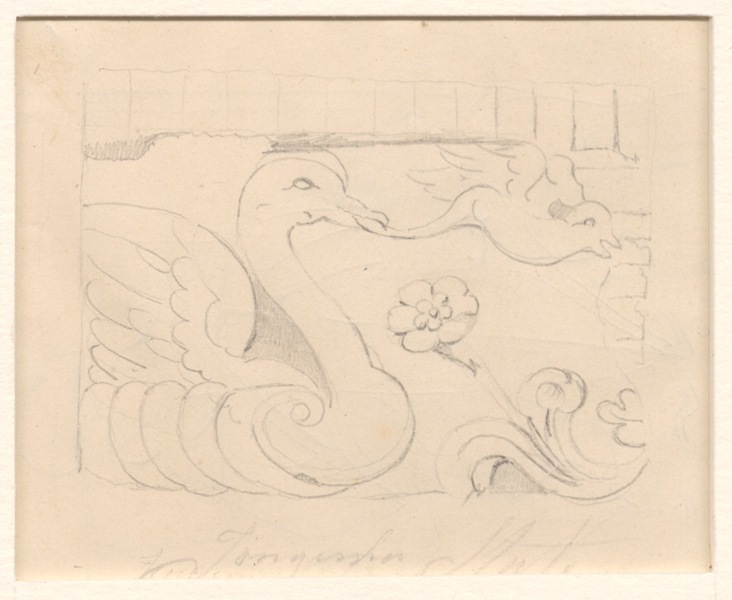 Gezicht op antieke stenen in de tuinmuur van het Jongamahuis