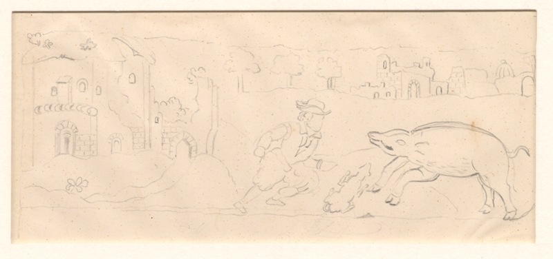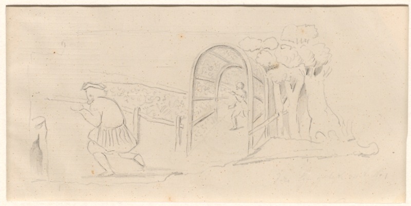 Gezicht op antieke steen in de tuinmuur van het Jongemahuis