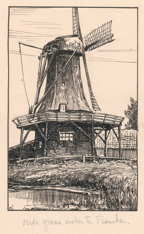 Gezicht op de oude graanmolen te Franeker