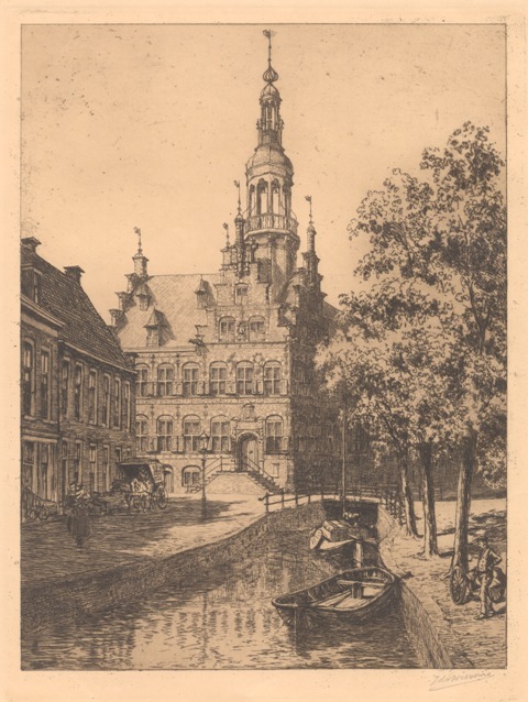 Gezicht op het stadhuis te Franeker