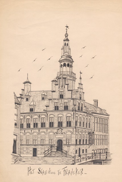 Gezicht op het stadhuis te Franeker