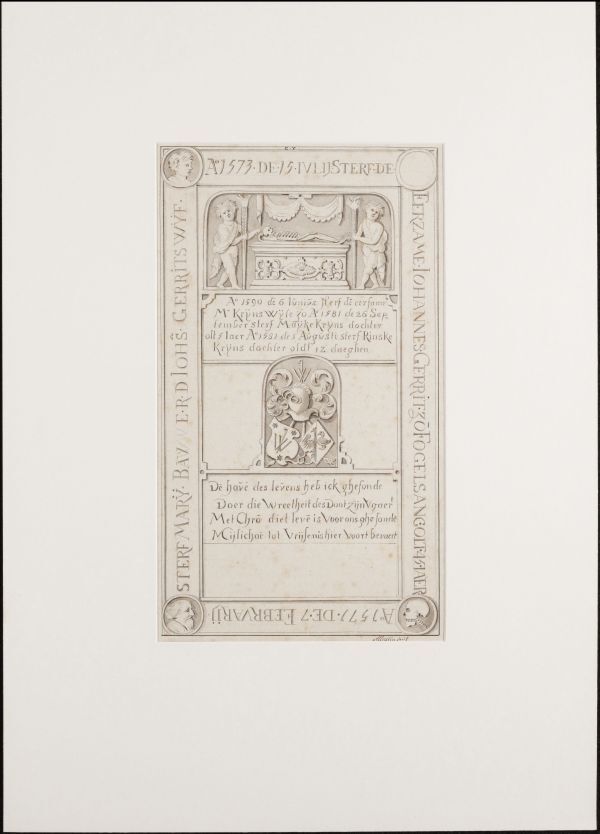 Grafsteen van Johannes Gerritzoon Fogelsang en zijn vrouw in de Martinikerk te Franeker, sterfjaar resp. 1573 en 1571