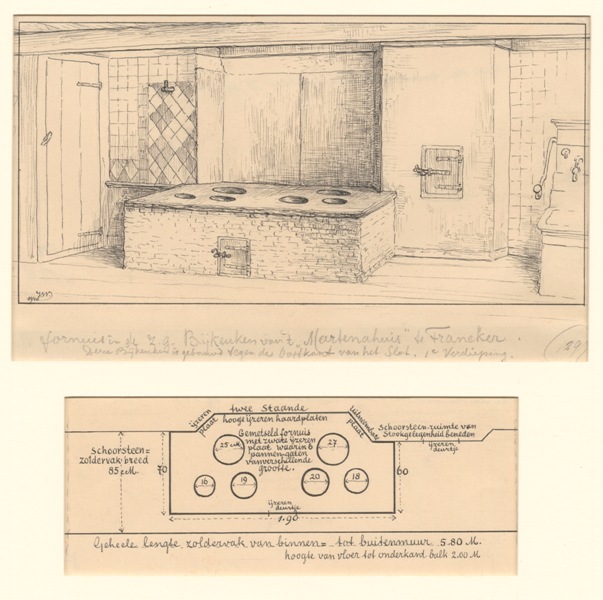Gezicht op het fornuis in de bijkeuken van het Martenahuis te Franeker