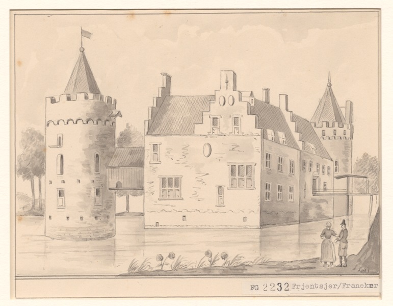Gezicht op de zuidzijde van het Sjaardema slot te Franeker