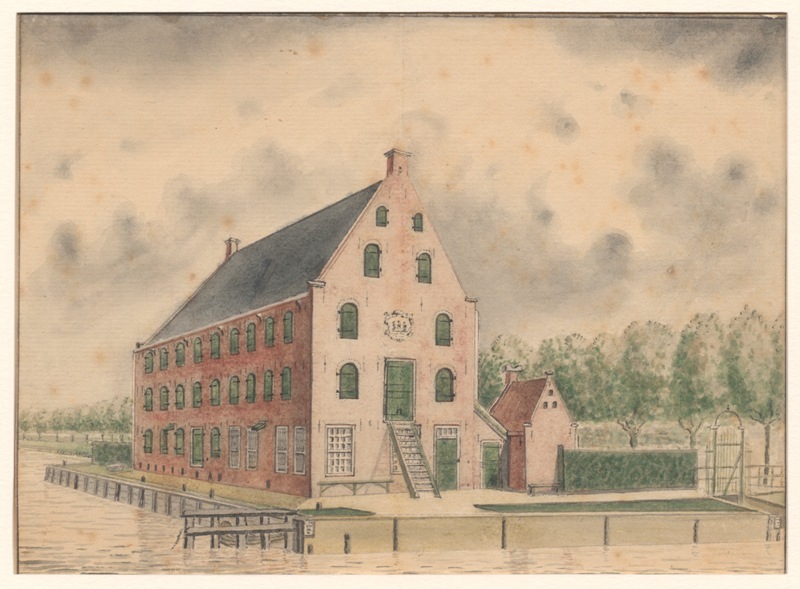Gezicht op een graanpakhuis op het eilandje in de stadsgracht te Franeker