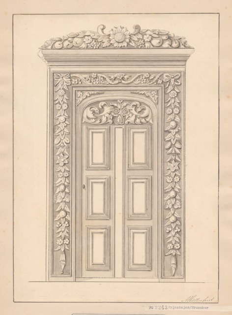 Gezicht op een kamerdeur in een huis op het Plat te Franeker