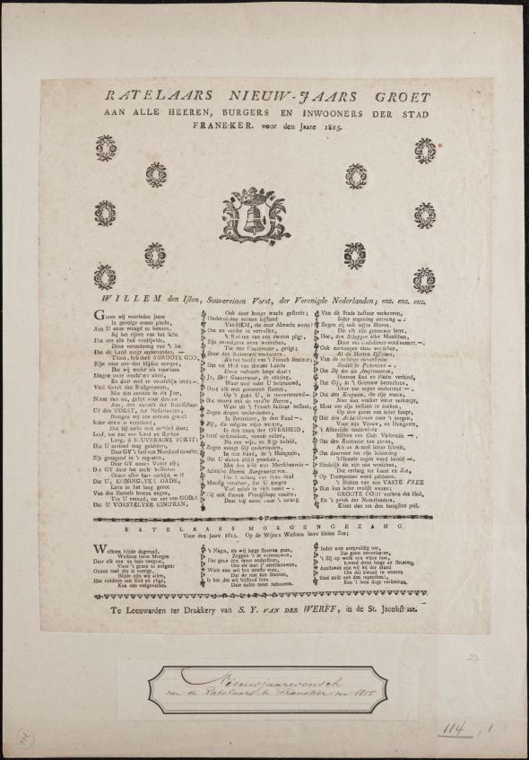 Nieuwjaarswens van de ratelaars van Franeker voor het jaar 1815