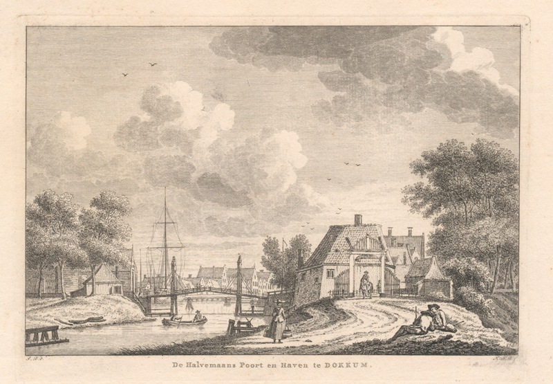 Gezicht op de Halvemaanspoort en Haven te Dokkum
