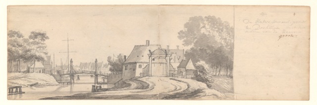 Gezicht op de Halvemaanspoort en de haven