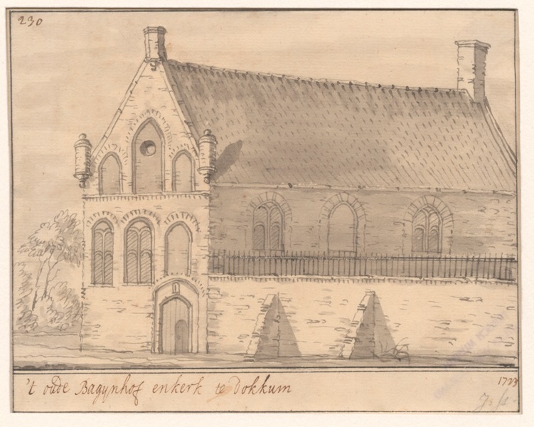 Gezicht op het Oude Bagijnhof en kerk te Dokkum