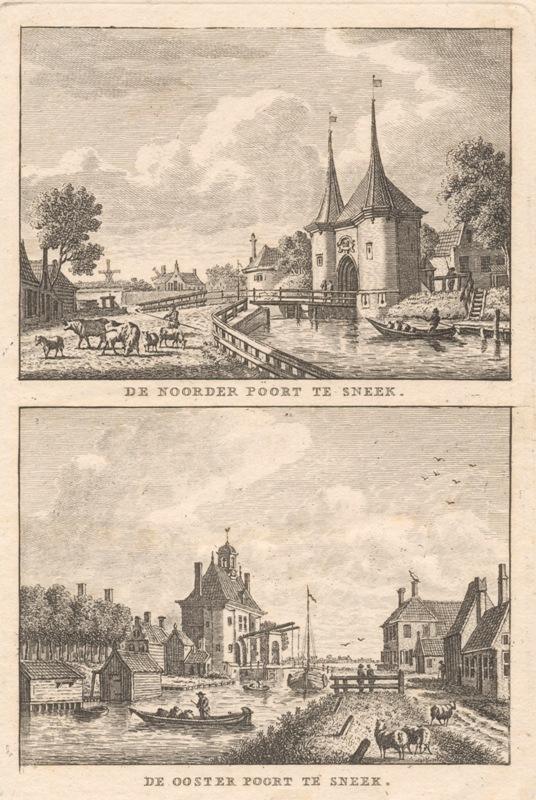 Gezicht op de Noorder- en Oosterpoort te Sneek