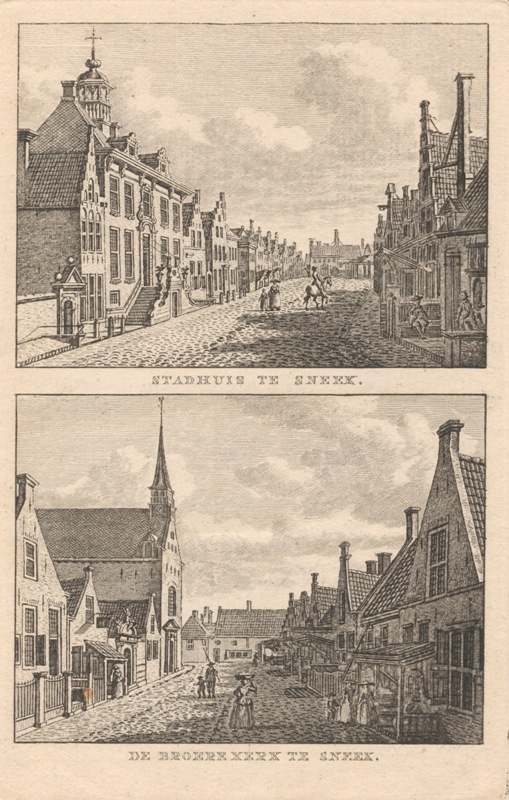 Gezicht op het stadhuis en de Broerekerk te Sneek