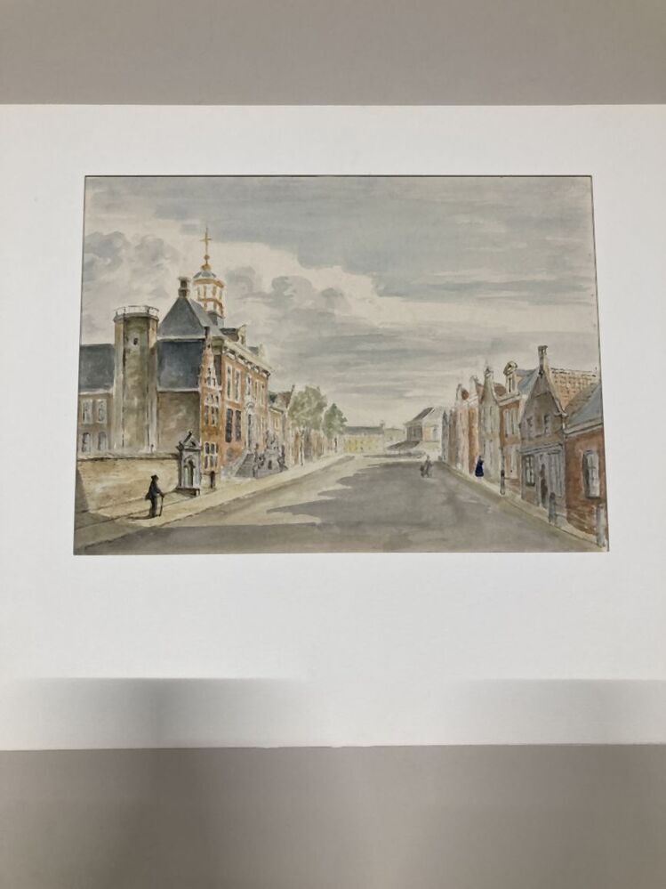 Gezicht op het stadhuis in de lange Marktstraat te Sneek