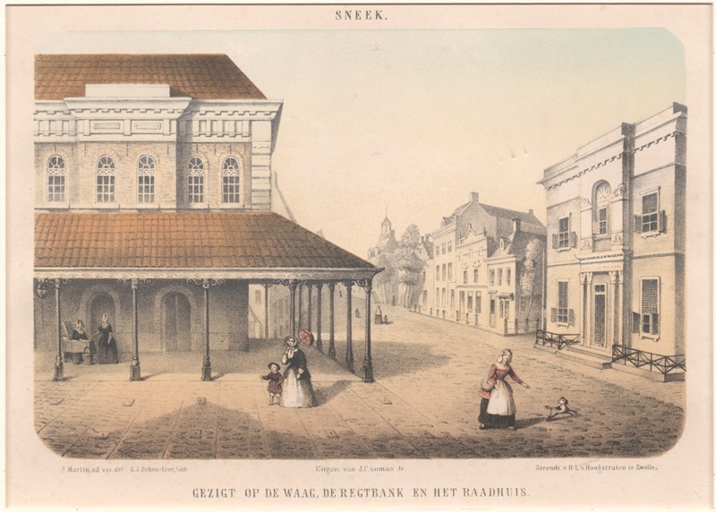 Gezicht op de Waag, de Rechtbank en het Raadhuis te Sneek