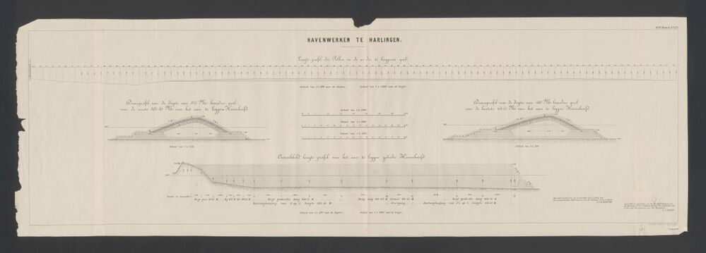 Havenwerken te Harlingen met lengte- en dwarsprofiel