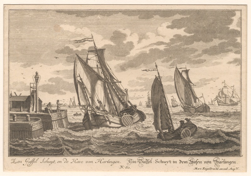 Gezicht op een Gaffelschuit in de haven van Harlingen