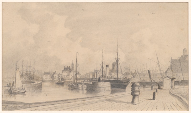 Gezicht op Harlingen vanaf het Zuiderhavenhoofd gezien