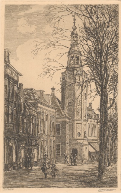 Gezicht op de Voorstraat met het stadhuistorentje te Harlingen