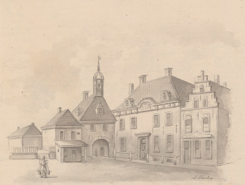 Gezicht op de Havenpoort en het Admiraliteitsgebouw te Harlingen