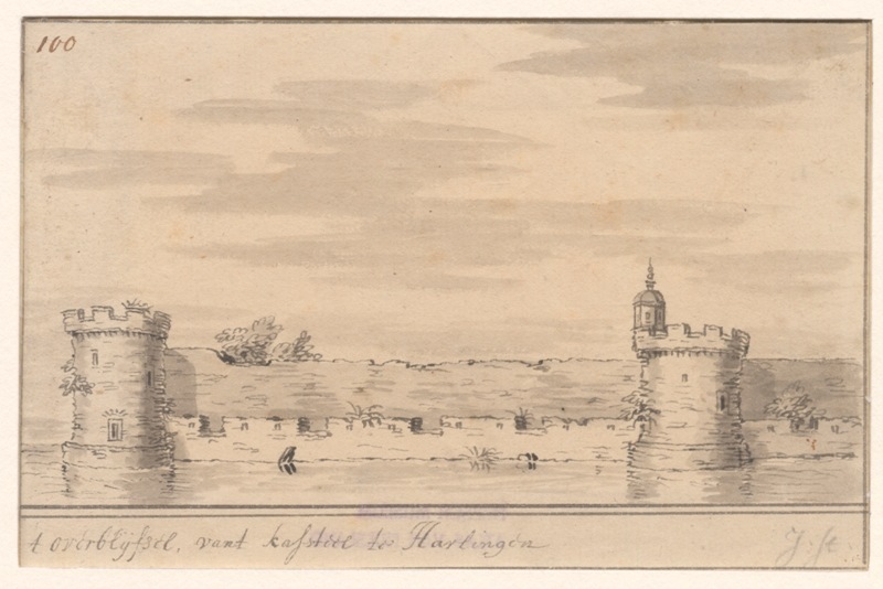 Gezicht op het overblijfsel van het kasteel te Harlingen