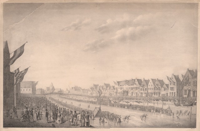 Schaatswedstrijd van dames en heren op de Zuiderhaven van Harlingen