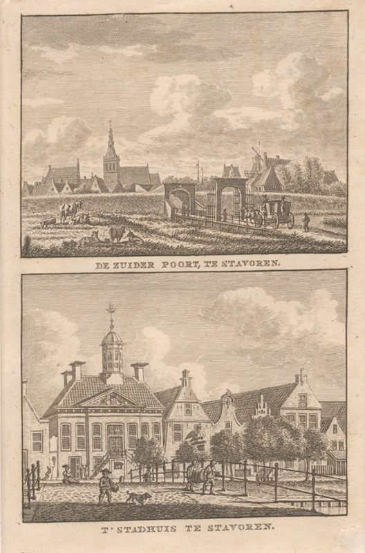 Gezicht op de Zuiderpoort en het Stadhuis te Stavoren