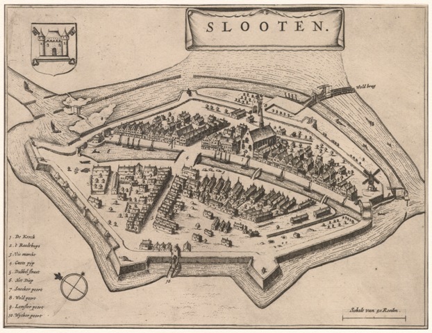 Plattegrond van Sloten op een schaal van 50 roeden