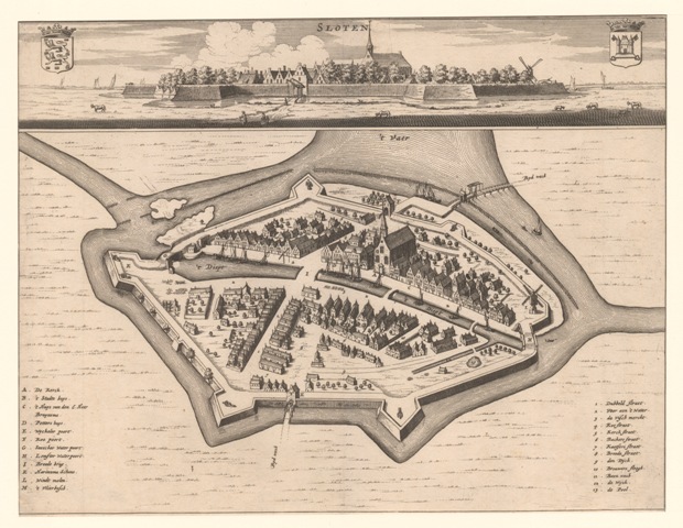 Plattegrond en aanzicht op de stad Sloten