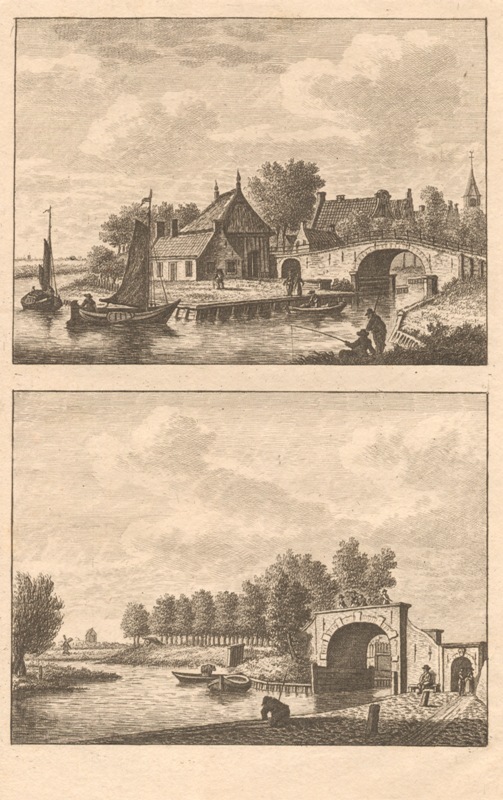 Gezicht op de Sneker- en Lemster Waterpoort te Sloten