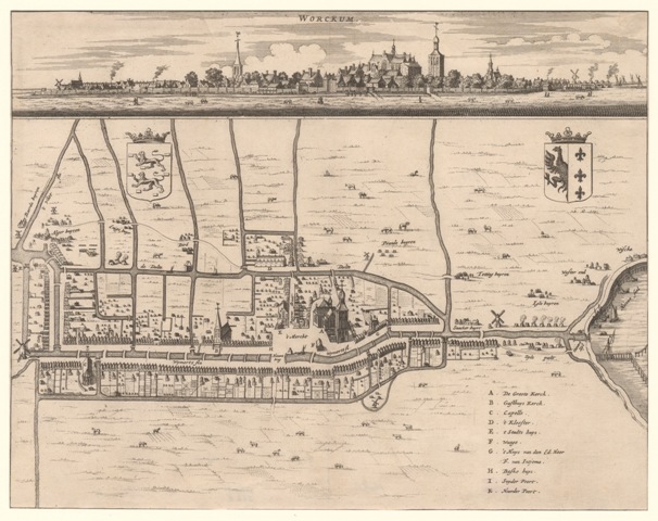 Plattegrond en gezicht op de stad Workum