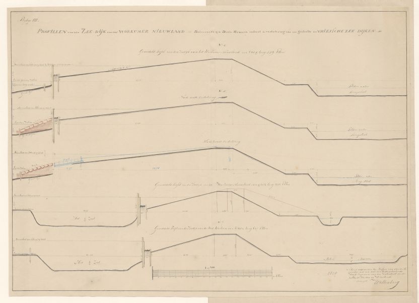 Profielen van de zeedijk op de polder van het Workumer Nieuwland