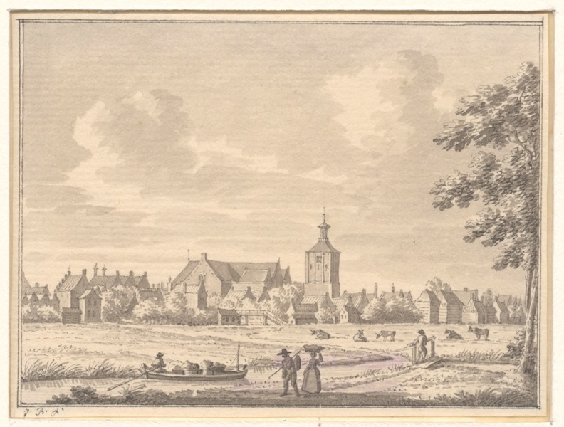 Gezicht op de stad Workum van de kant van Terwoude gezien