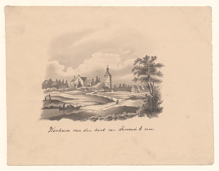 Gezicht op de stad Workum van de kant van Ferwoude te zien