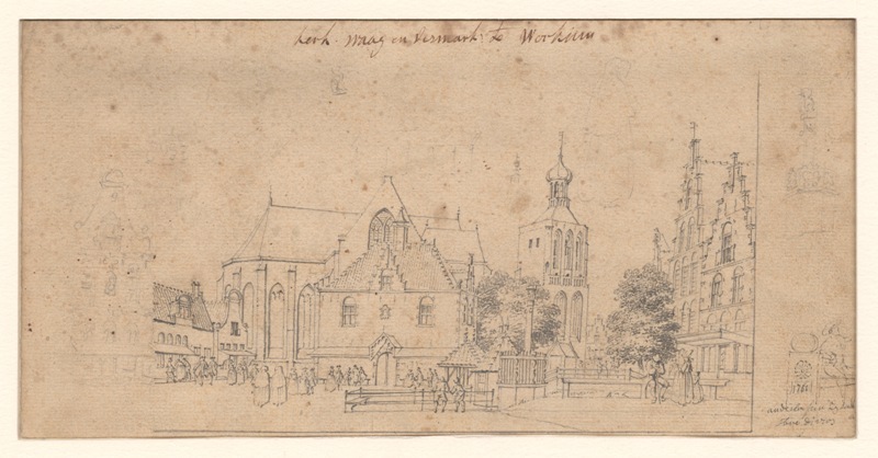 Gezicht op de kerk, de waag en de vismarkt te Workum